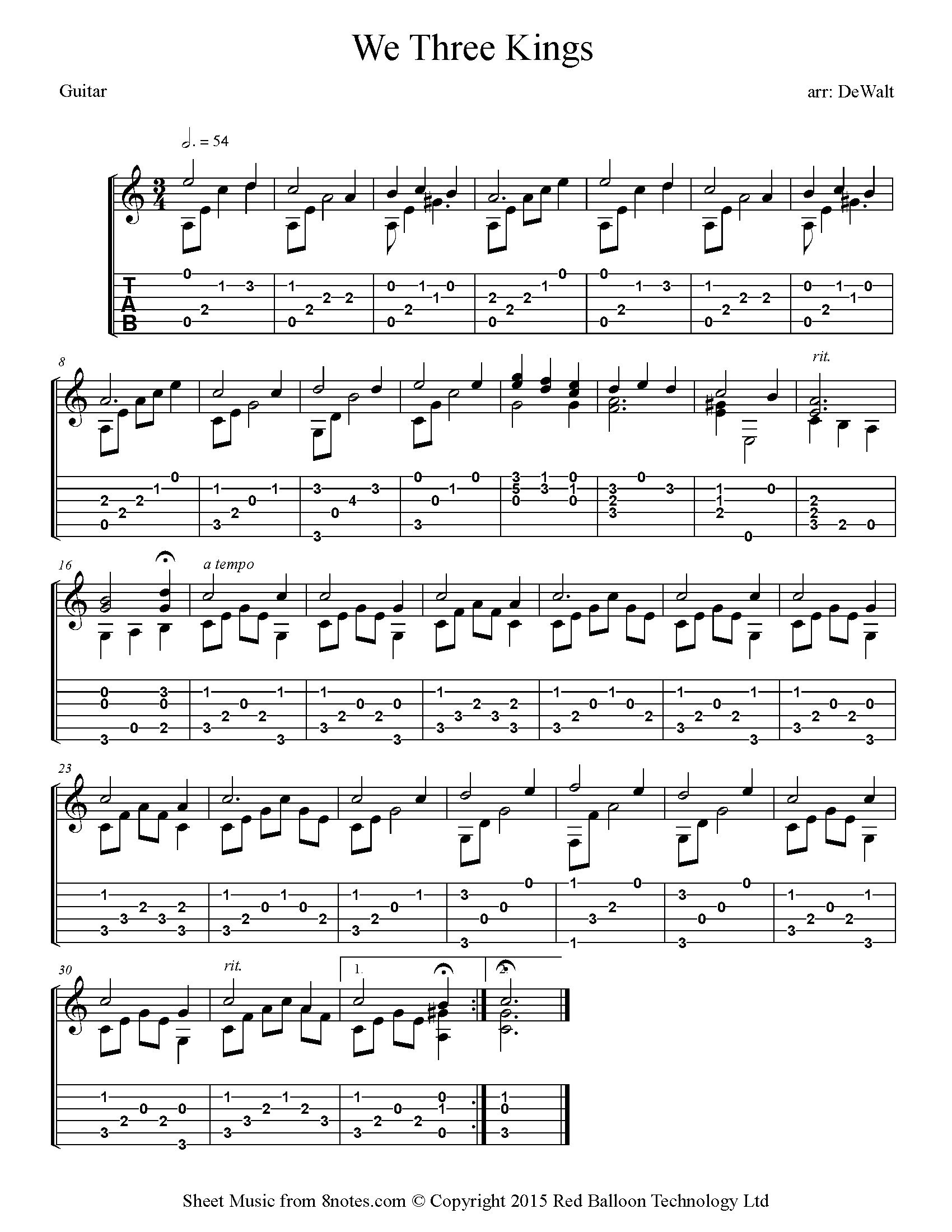 We Three Kings Of Orient Are Sheet Music For Guitar 8notes Com